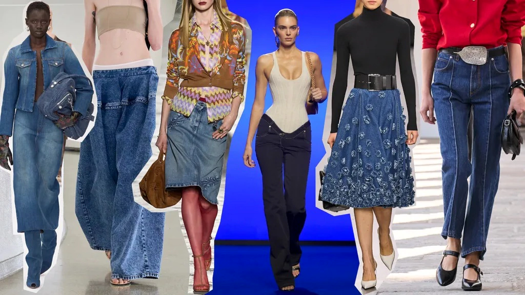 Today’s denim landscape is remarkably diverse. Wide-leg silhouettes, oversized jackets, denim-on-denim styling, patchwork constructions, and sculptural skirts dominate both street style and runways. The once rigid idea of jeans has expanded into a full wardrobe language.