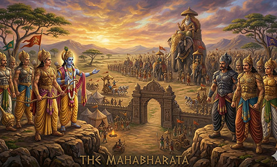 What makes it extraordinary is its willingness to pause even at the edge of war. As armies assemble on the battlefield of Kurukshetra, time seems to suspend itself. Arjuna, paralysed by doubt, turns to Krishna—and what follows is the Bhagavad Gita, a philosophical dialogue that reframes duty, action, and detachment.