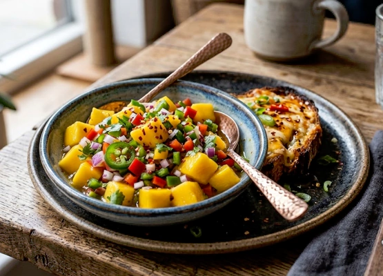 Fresh mango brings natural sweetness while red chilli adds a lively kick. This bright salsa works beautifully with grilled vegetables, tacos, or simply with tortilla chips.