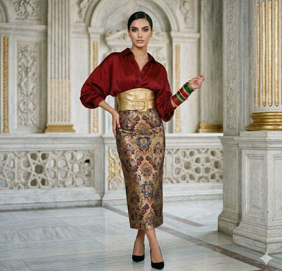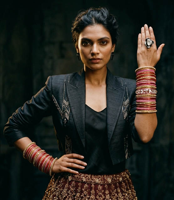 The idea is playful—mixing timelines, cultures, and textures. A stack of traditional bangles worn with a sharply cut pantsuit feels both rebellious and rooted.