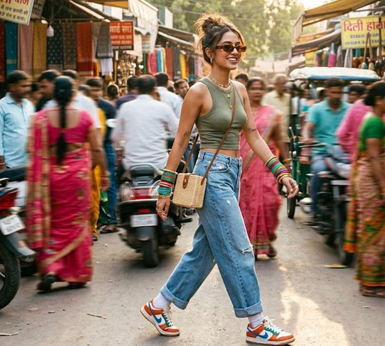 Perhaps the most exciting evolution is in fusion styling. Glass bangles are now paired with blazers, co-ord sets, slip dresses, and even Western evening wear.